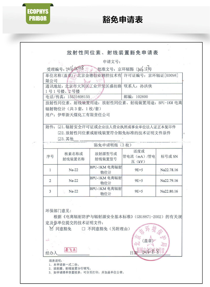 低于國家標(biāo)準(zhǔn) GB18871-2002《放射性防護(hù)與輻射源安全基本標(biāo)準(zhǔn)》,對(duì)于人體無傷害,對(duì)環(huán)境無污染,不受國家環(huán)保及公安,衛(wèi)生等各個(gè)部門的監(jiān)控。