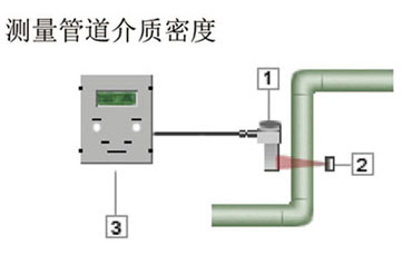 放射性密度計(jì)工作原理: 放射性密度計(jì)的工作原理是由放射源產(chǎn)生的伽馬射線穿過被測(cè)介質(zhì), 其中一部分射線被介質(zhì)吸收,剩余部分 射線被傳感器控制器所接收, 接收到的γ射線量越多,表明被測(cè)物密度越小,反之亦然,根據(jù)伽馬射線的衰減程度, 接收控制器 CPU 計(jì)算放射性通量的變化情況 從而測(cè)量被測(cè)介質(zhì)的密度, 并以標(biāo)準(zhǔn)的 4-20mA 電流形式 輸出。 | 測(cè)量管道介質(zhì)密度