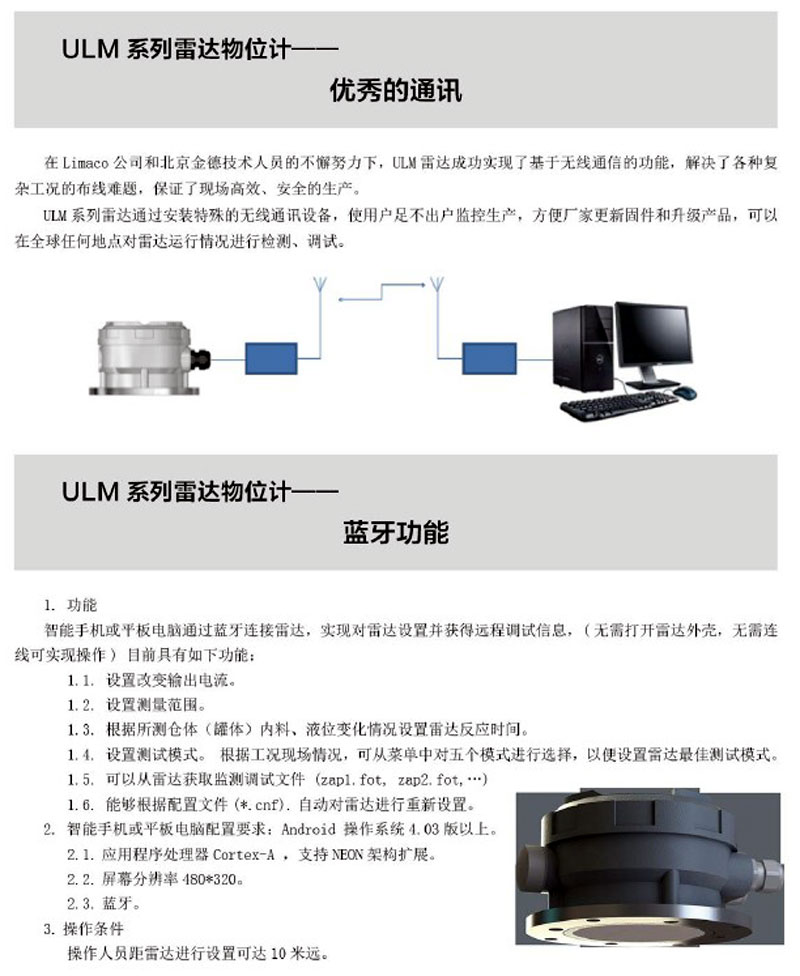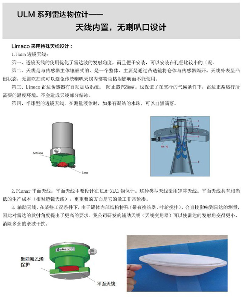 利馬克(LIMACO) ULM系列雷達(dá)物位測(cè)量?jī)x表,可以在回波反射極弱條件下識(shí)別和檢測(cè)到反射信號(hào),從而保證液位計(jì)可靠、精確的測(cè)量。適用于各種復(fù)雜工況的物位測(cè)量,采用內(nèi)置透鏡天線設(shè)計(jì),保證物位計(jì)長(zhǎng)期穩(wěn)定運(yùn)行。